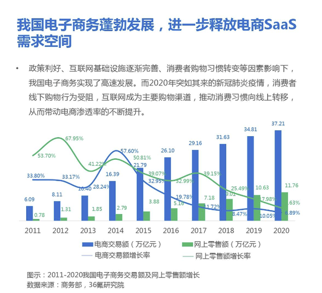 另一方面,电商SaaS作为链接商家与电商之间的桥梁,在中国市场上不得不走大平台的路线,即为商家提供能在主流平台上开店的工具,这是由互联网行业的特点所决定的。