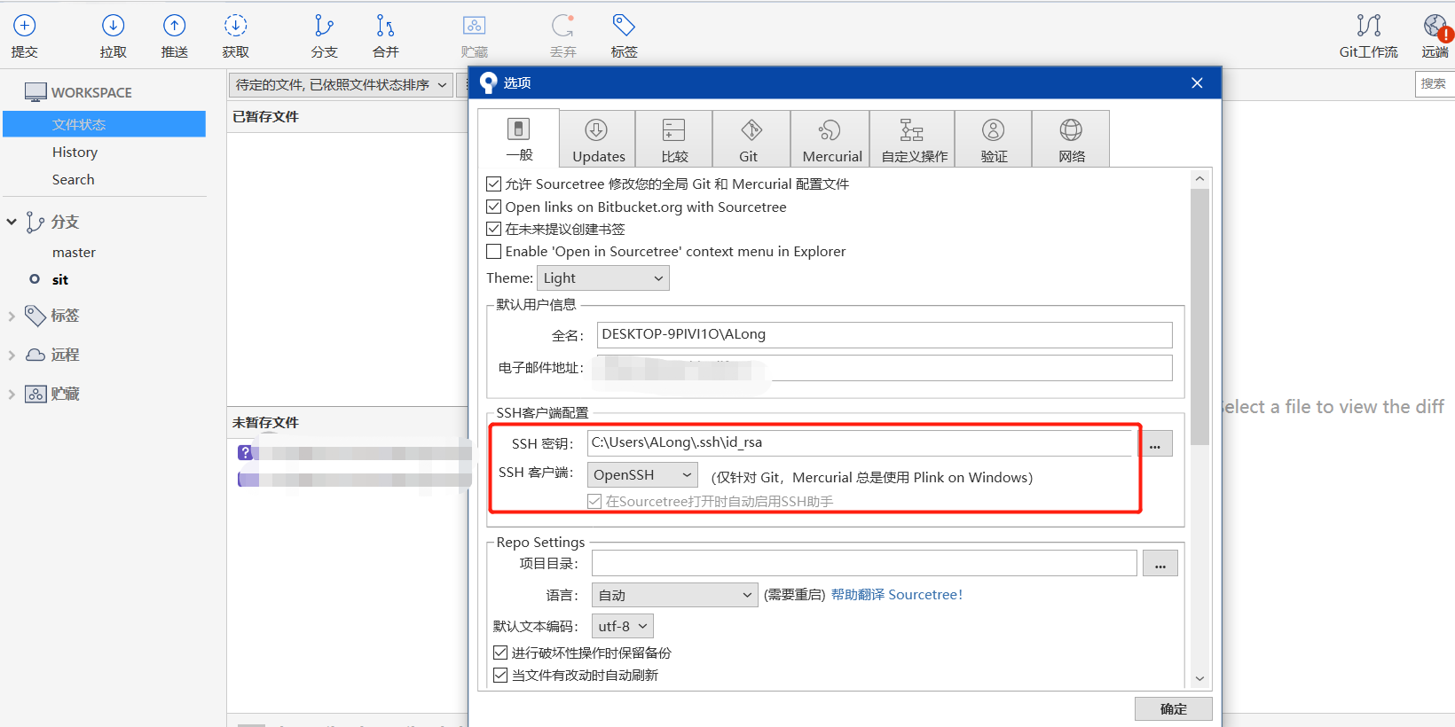 然后将仓库导入到SourceTree里面,然后问题出现了,无论是pull 还是push代码好像都无动于衷
