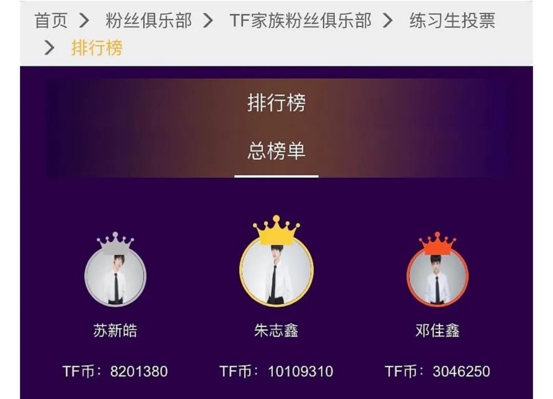 如今,“TF三代”练习生也正在如法炮制,虽尚未迎来出道战,但粉丝仍为三团的养成操碎了心。2020年,因三代练习生仅有在“想见你De倒计时”点亮活动中排名前五的成员才可获得开通个人微博的资格,朱志鑫粉丝打投100多万元,将其送上第一名的位置,而紧随其后的苏新皓、邓佳鑫,粉丝也为其投入80多万元、30多万元。