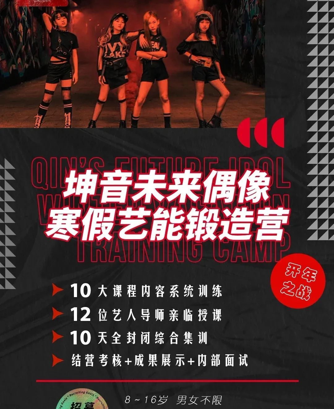 像是坤音娱乐旗下厂牌坤音未来偶像,便大量吸纳8岁至16岁练习生资源,并为其提供练习生培养和经纪公司非公开面试、Casting CV等。此外,其还在寒暑假开设训练营,以10天左右的唱跳、表演、形体等课程来布置练习生完成唱跳合作和Solo舞台。根据部分练习生所示,训练营同样需缴纳一定的费用,这也成为不少经纪公司的额外营收。