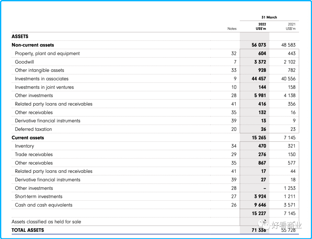 2022年财报显示,截至2022年3月31日,Naspers账上的现金及现金等价物是9亿美金;而Prosus的现金及现金等价物为96.46亿美金。
