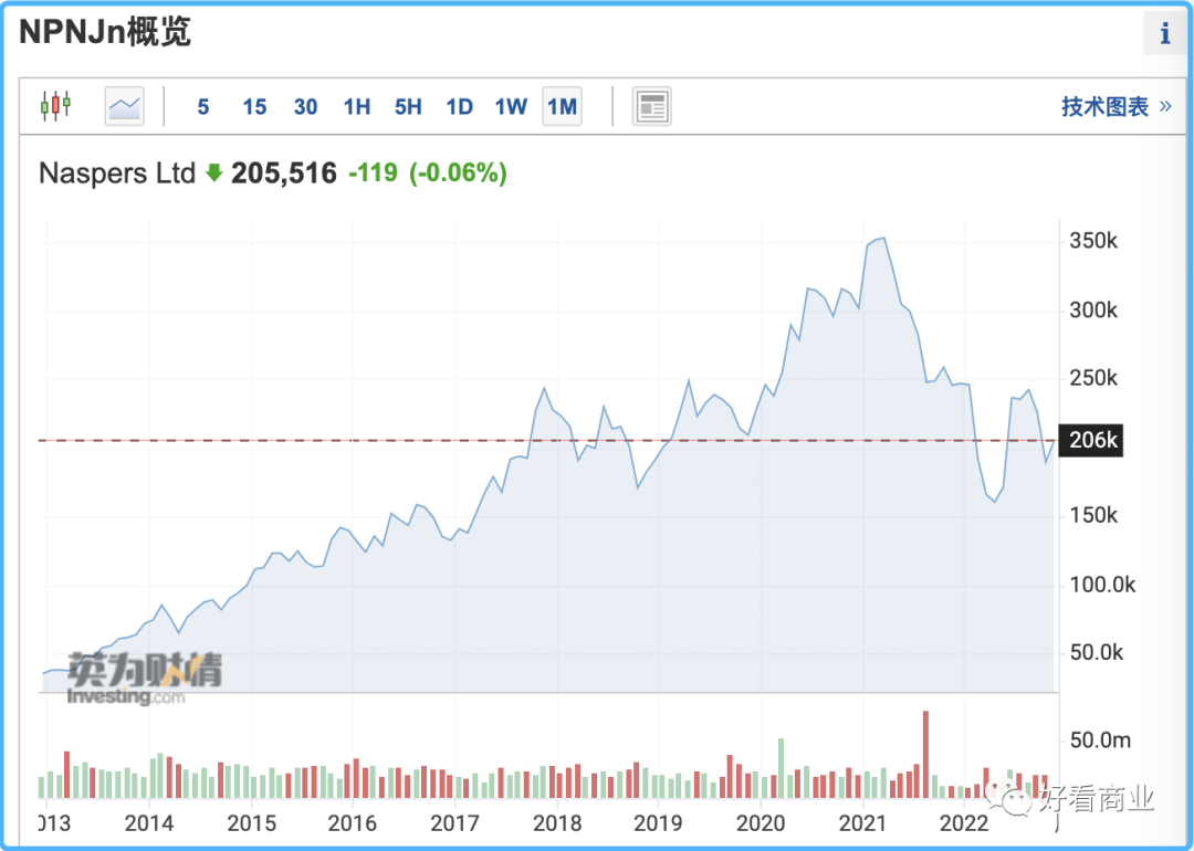 Naspers曾提到,随着全球科技和互联网公司估值显著下滑,其总资产的折价已经“跌到无法接受的程度”。