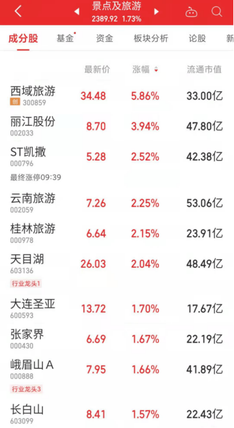 根据《新型冠状病毒肺炎防控方案(第九版)》,“通信行程卡”查询结果的覆盖时间范围由14天调整为7天。受该消息影响,A股景点及旅游股全线飘红,丽江股份、西域旅游、张家界、天目湖等股纷纷上涨。