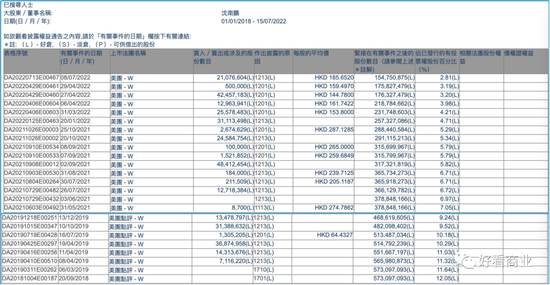 此次减持后,王慧文在美团的持股比例降至持股比例降至0.35%。