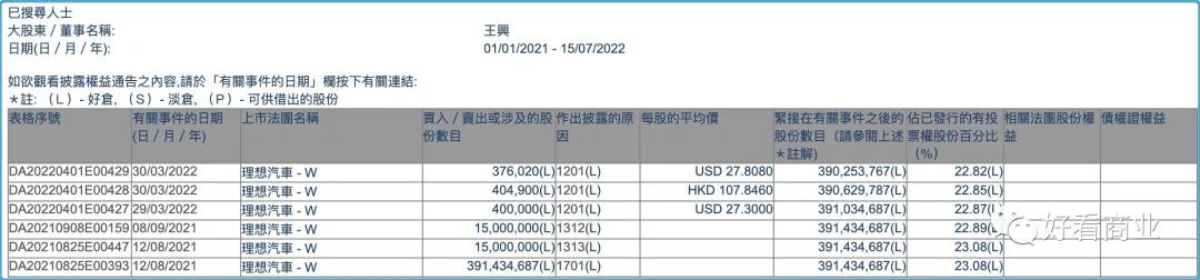 截至3月30日,王兴在理想汽车的持股比例降至22.82%。