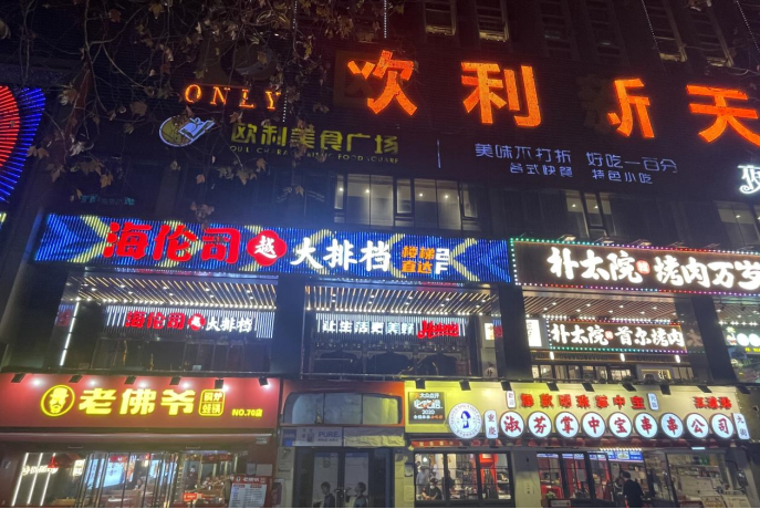 闹市区的海伦司小酒馆与大排档 图源:奇偶派拍摄