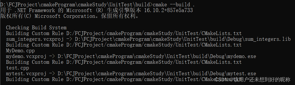 CTest遵循的标准约定是:返回零意味着成功,非零返回意味着失败。可以返回零或非零的脚本都可以做测试用例。(Windows端使用VS编译时要保证安装“用于Windows的C++ CMake工具”)