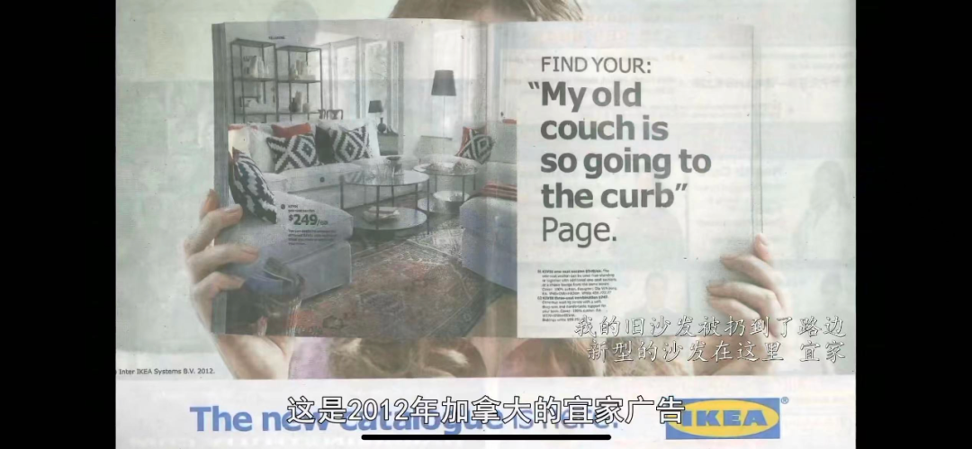 (宜家广告:我的旧沙发被扔到路边,新型的沙发在这里)