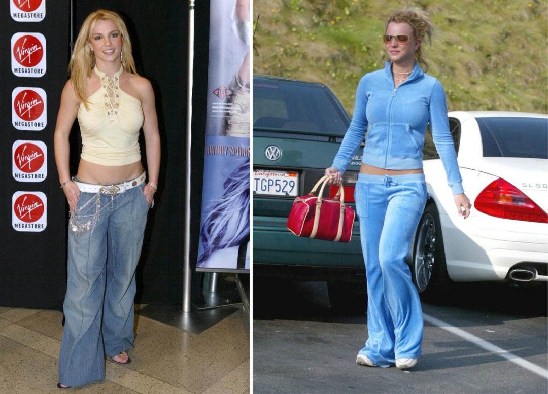 左图:Britney Spears低腰阔腿牛仔裤;右图:Juicy Couture Tracksuit(来源:Glamour)