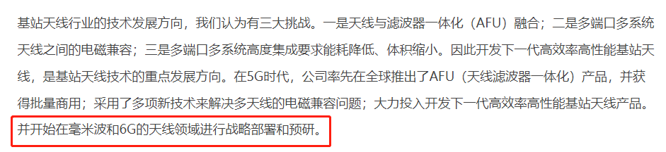 3月2日,通宇通讯在互动易平台表示,公司针对6G技术的研究处于规划预研阶段,有一定技术储备和积累。随后又表示,“目前在射频通信领域专利可满足2G到5G多网络制式的多样化产品需求”。并表示,“2022年公司变更部分募集资金用途,投入卫星地面终端波束自适应通信天线技术研究项目,也是针对6G做进一步技术预研和储备”。