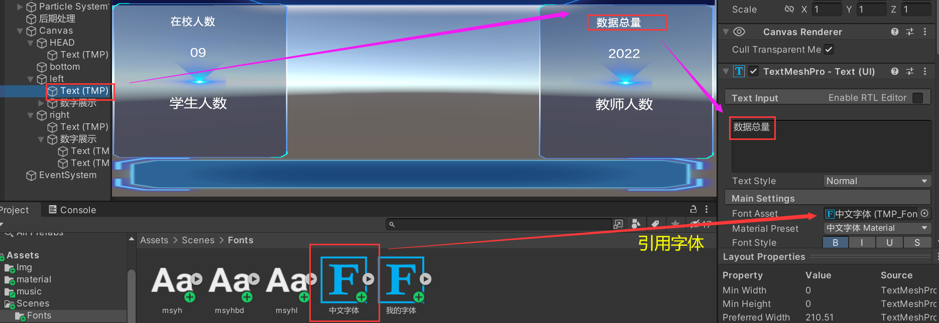 第二步:将复制的字体放到unity项目下的Scenes文件下;