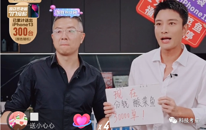 这是真金白银换来的流量。微博+抖音抽奖1500台iPhone 13,大量1分钱的酸菜鱼、1块9的小炒肉等低价商品,多个微博高位热搜,抖音广告和第三方引流,贾乃亮官宣代言并坐阵直播等,网传这场19小时的直播总支出过亿。
