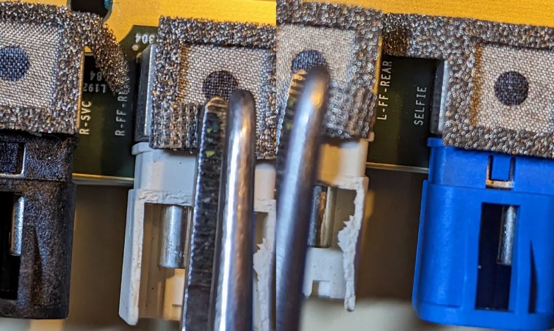 HW4.0 支持 12 路摄像头输入,其中一个标记为“备用”,前视摄像头由三目改为双目。从公开图片可以看出,不同插口上都标记了摄像头的连接位置,比如 F-SVC、L-SVC、R-SVC、R-FF-Rear 等。