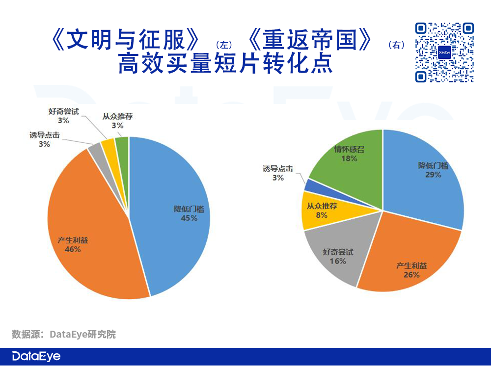 《文明与征服》的转化点相对单一,更多的创意素材以降低玩家的游戏门槛为主,包括对玩法的介绍、兵种的搭配,试图向玩家传递出“简单、有套路”的游戏玩法。《文明与征服》也会在素材中增强玩家的游戏体验,让更多玩家提前感受到游戏带来的快感、乐趣。