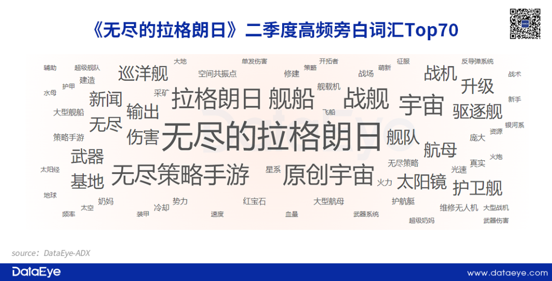无论是《无尽的拉格朗日》还是《巨兽战场》,两者都是创新性题材产品,因此在创意素材吸睛点上,更加注重从题材爱好者的长期兴趣出发,作为吸引玩家眼球的重要方式。《无尽的拉格朗日》除了延续了对太空战舰展示之外,在本季度增加了对产品独特的“宇宙世界观”进行补充,包括相关提及“暗黑森林法则”等题材兴趣点。
