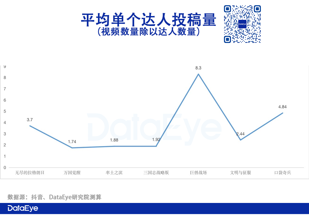 根据DataEye研究院的观察显示,《无尽的拉格朗日》和《巨兽战场》在二季度末同时提高了“预估单价”,效果型达人营销内卷加剧。