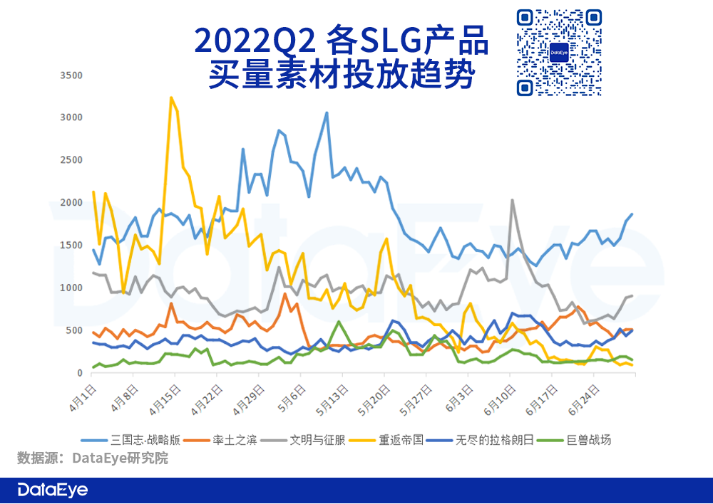 DataEye研究院发现,二季度专注于国内市场的SLG头部产品在营销侧上改变了思路,具体有以下表现: