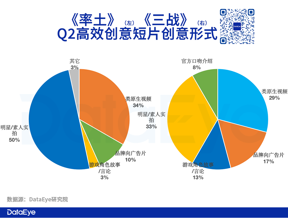 而《三战》方面,总体较为均衡,但整体创意较为硬核,广告性质偏重,甚至出现了比较官方口吻字正腔圆口播介绍游戏这种较为少见的形式。