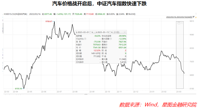 近期,汽车的价格战愈演愈烈。随着东风打响燃油车降价的第一车,市场中已经有超过30个品牌加入到了这场轰轰烈烈的价格大战中。降价幅度罕见的价格大战让资本市场大幅看跌整车厂的盈利能力,从3月初至3月15日,中证800汽车指数快速下跌了近10%。