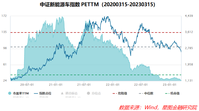 一是当前新能源车指数已经具备一定的性价比。对于新能源车整体而言,长期需求的可持续性毋庸置疑,这事关双碳目标的实现。但于长期而言,无论新能源车还是燃油车,对于消费者而言终究是同样的汽车消费,新能源车过去的高估值源于市场高成长的预期,但未来新能源车的估值也将逐渐向燃油车靠拢,而从当前来看,新能源车虽然处于近三年估值的历史低分位,新能源车整体25x左右的市盈率仍然较中证800汽车指数19x的估值虽然仍有一定的溢价,但从市场对新能源车指数整体的预期来看,2023-2024年间,新能源车仍然保持年化30%以上的净利润增速,以当前24x左右的估值来看,已经具备较高的配置性价比。