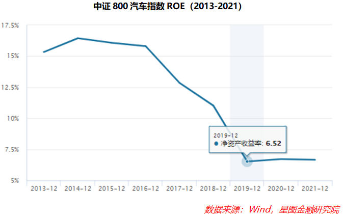 以中证800汽车指数整体来看,2019年净利润增速同比降低了近40%,ROE同样从2018年的11%降低至2019年的6.52%。