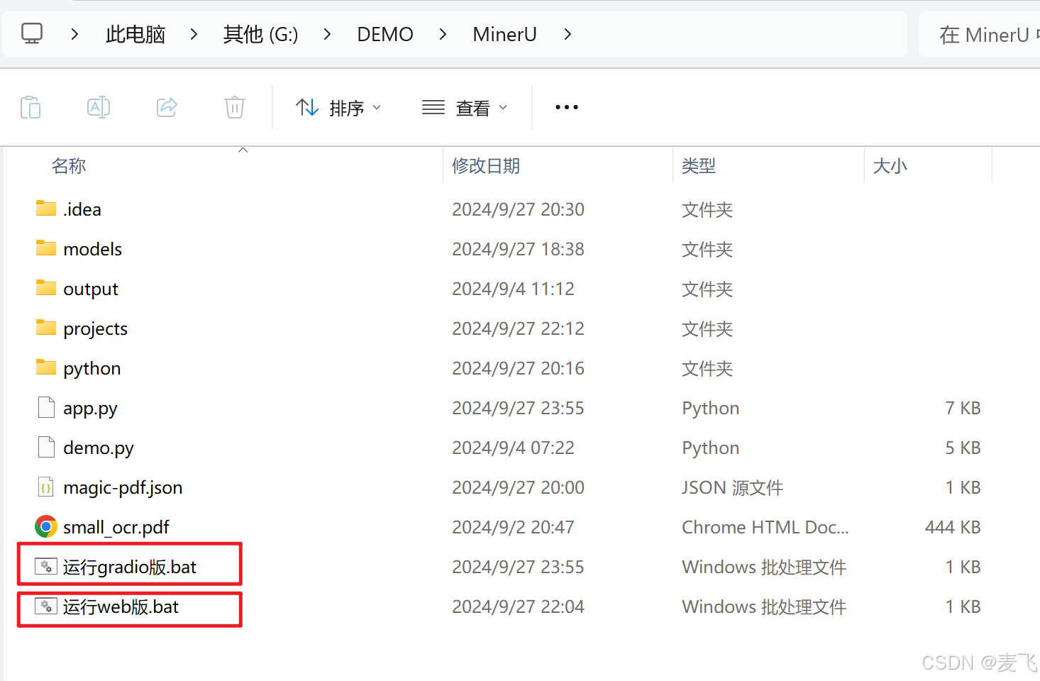 运行方式, 在MinerU目录右键启动cmd, 或者启动cmd切换到MinerU目录, 运行下列命令