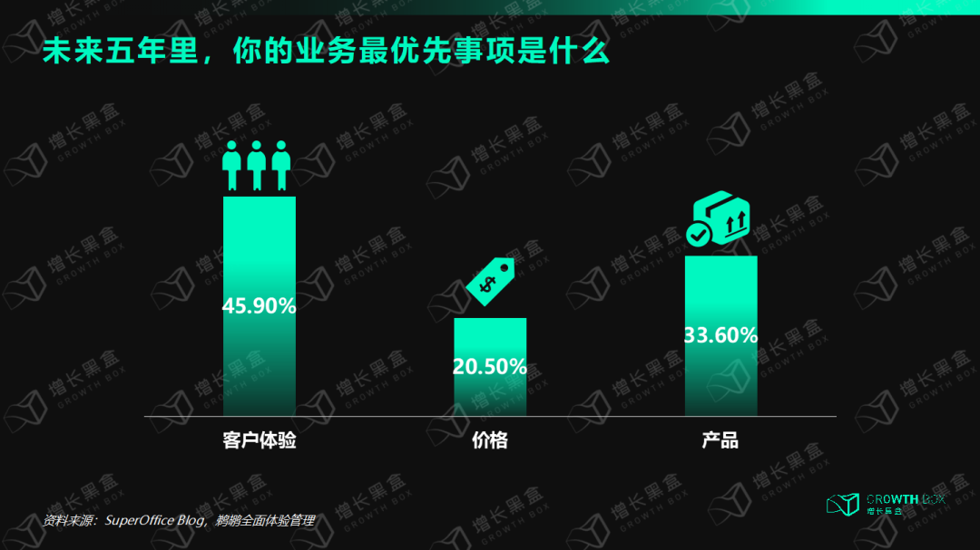 假如你是一家企业的高管,有没有思考过未来五年企业的首要任务是什么?对此,业界有机构对 1920 位商业人士就此问题进行了调研。其结果是,客户体验(CX)排在第一位,击败了产品和价格。