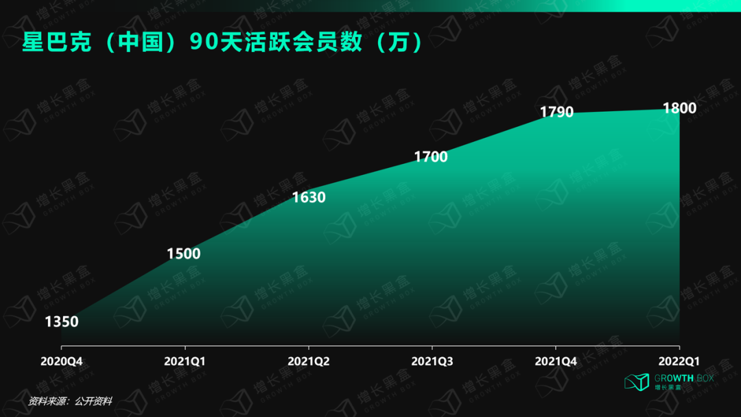 数据显示,尽管受到疫情反复影响,但是星巴克会员数量从2020年Q4直线攀升,**截至2022年Q1其90天活跃会员数量达到了1800万。而星巴克在中国市场的销售额会员贡献占比从2021年Q2的72%[4]**,提升到了2022年Q1的75%。[5]
