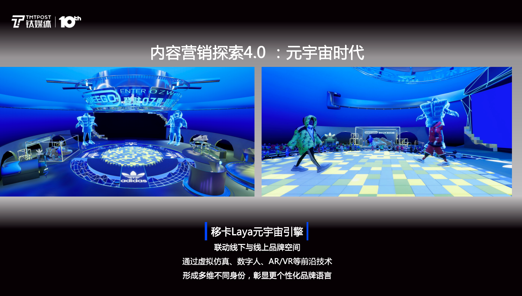 未来,对于内容营销的探索,我们会进入到4.0时代,即元宇宙时代。彼时,品牌不只拥有一个线下的现实空间,还会拥有线上的虚拟空间,同时,每个消费者也拥有现实的身份和线上虚拟身份,当这些交融融合时,会带来更多的营销想象空间。