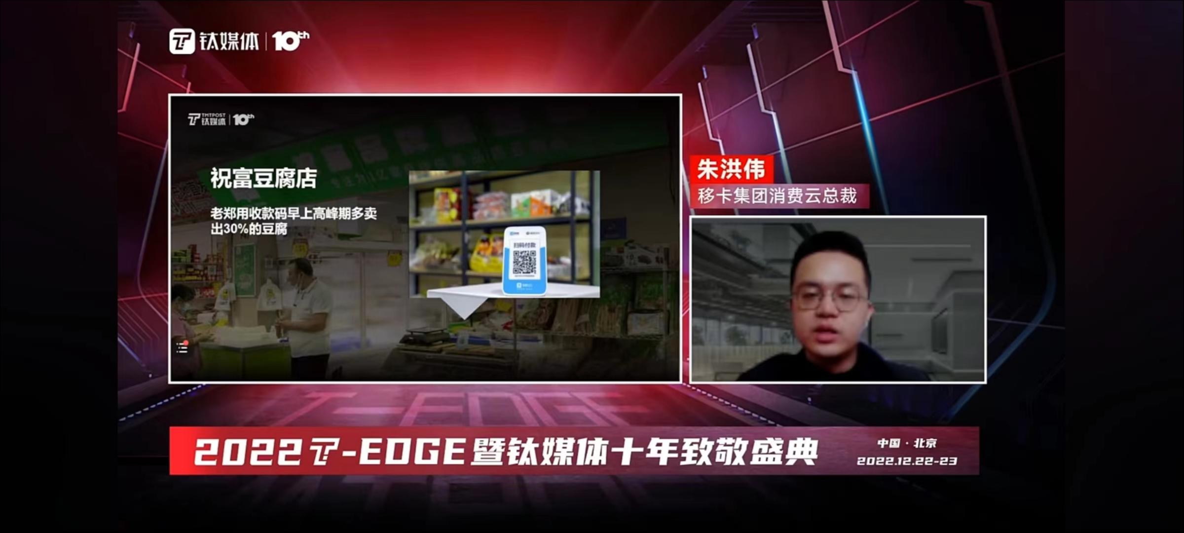 12月23日,在钛媒体2022T-EDGE大会上,移卡集团消费云总裁朱洪伟发表了《从支付到元宇宙,线下消费十年蝶变》的主题演讲。移卡(09923.HK)是一家基于支付的领先科技公司,致力于构建独立可拓展的商业数字化生态系统,目前服务小微商户超790万,触达消费者超10亿。