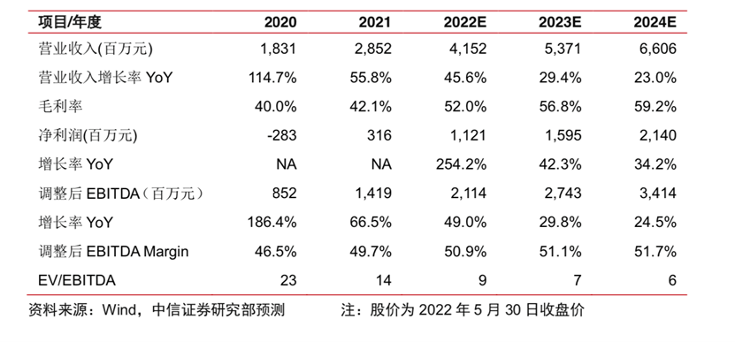 根据中信证券的预测,2022年、2023年、2024年,秦淮数据无论从营收增长率还是毛利率,无论是净利润和调整后的EBITDA,都有不错的增长水平。