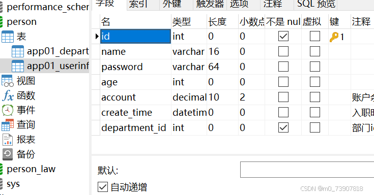 # 在django中,数据表中的名称自动加上_id,也就是depart_id
