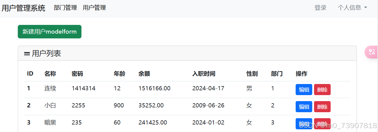 参考Django web 开发(四) - Django项目实践(四)-用户管理_django 转字符串-CSDN博客