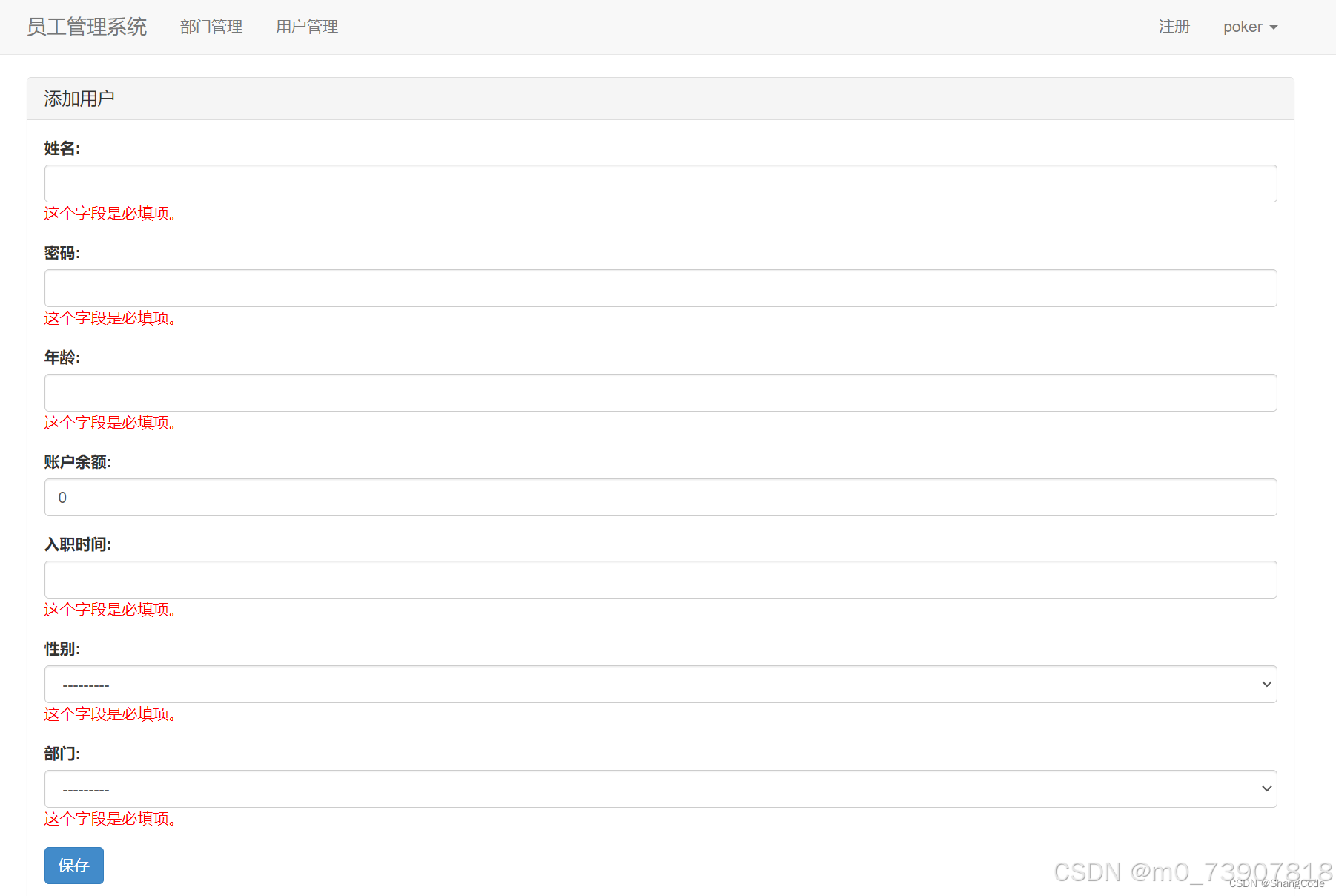 如果我们没有写入任何内容直接点击"保存",那么页面会提示错误