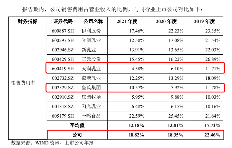 对此,认养一头牛解释称,一方面是因为公司作为新兴品牌,需要多渠道推广提高市场占有率;另一方面,公司主要通过线上渠道销售,尽管渠道让利少,但渠道费用高,这导致与同行相比,认养一头牛呈高毛利高销售费用率的特点。