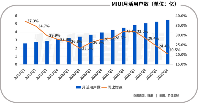 但结果呢?自2019以来,小米的MIUI用户增速就开始波动下滑。