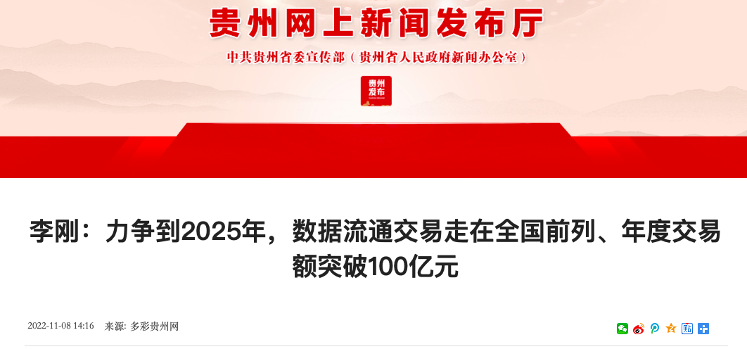 昔日先驱贵州,则在2021年10月全新上线了省级数据流通交易平台,同时再度提出“到2025年,数据流通实现百亿”,不过这一次的百亿,指的是年度交易额。同样提出百亿交易额目标的,还有深数所。