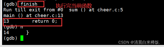 6、finish:执行到当前函数返回,然后挺下来等待命令