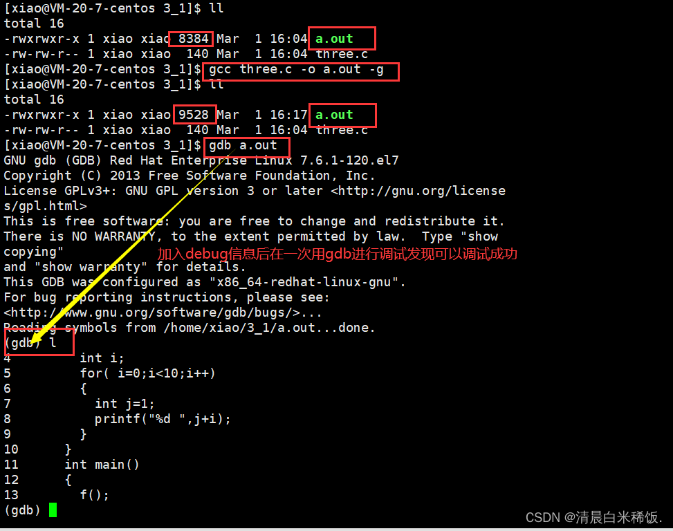 3、要使用****gdb调试,必须在源代码生成二进制程序的时候, 加上 -g 选项。
