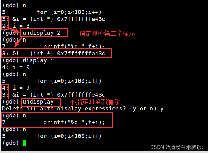 5、undisplay:取消对先前设置的那些变量的跟踪