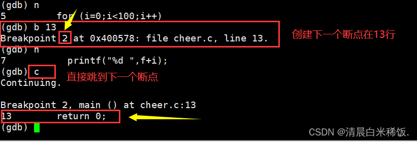 7、continue(或c):从当前位置开始连续而非单步执行程序(就是执行代码直到下一个断点)