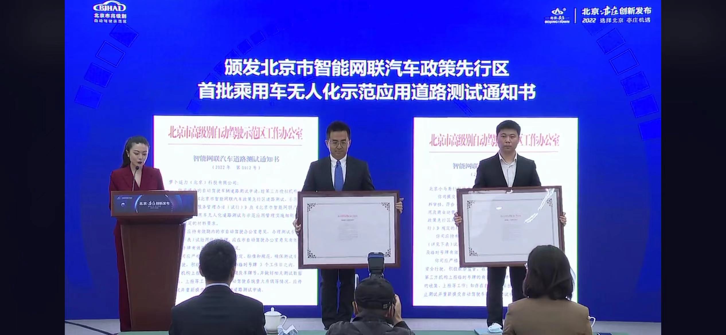 钛媒体APP4 月 28 日消息,百度、小马智行率先取得北京市智能网联汽车政策先行区首批“无人化示范应用道路测试”通知书,获准向公众提供“主驾位无安全员、副驾有安全员”的自动驾驶出行服务。