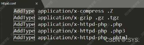 有些中间件允许解析其他文件后缀名,如asa、cer之类的或在httpd.conf配置文件中,配置如下代码,则能解析php、php3、phtml文件。所以上传一个后缀名为php3、phtml的文件即可。