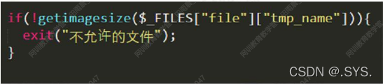利用getimagesize()函数获取图片的宽高等信息,如果上传的不是图片,那么则获取不到信息。