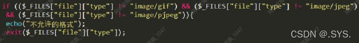 判断$_FILES["file"]["type"]是不是图片格式(image/gif、image/jpeg、image/pjpeg),不是则不允许上传。在HTTP 协议中,使用Content-Type 字段表示文件的MIME 类型。 $_FILES["file"]["type"]的值是从请求数据包中Content-Type中获取。