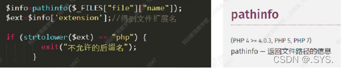 通过函数pathinfo()获取文件后缀,将后缀转为小写后判断是不是php。