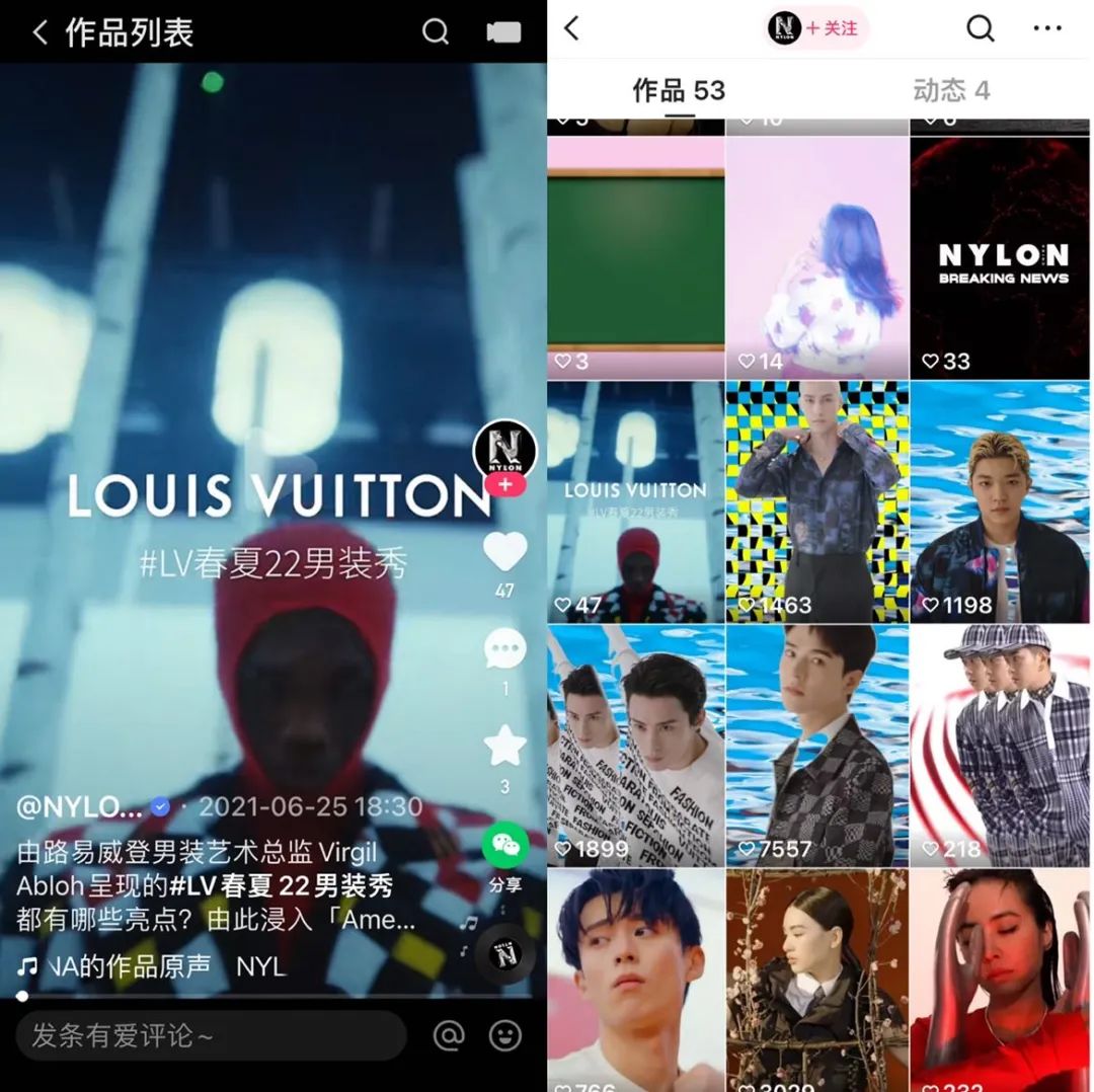 2021年6月,LV选择快手平台直播“2022 春夏男装秀”。相比品牌一年前的小红书首秀,本场直播是时装秀而非品牌单独邀请嘉宾进行直播,规避了直接的翻车风险。同时LV选择时尚杂志NYLON_CHINA作为直播合作伙伴。在时尚杂志的常规运作下,时下走红的龚俊、米卡、王鹤棣等年轻偶像都为品牌直播拍摄了宣传视频预热,视频评论区涌进不少粉丝留言。