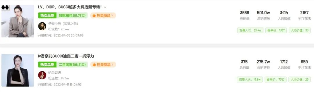 当然,非官方渠道的奢侈品们还是出现在了众多主播的直播间。
