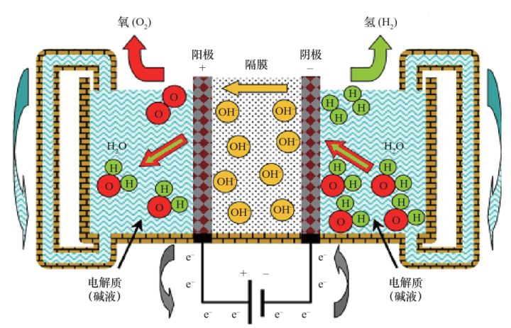 图表:碱性电解水制氢原理
