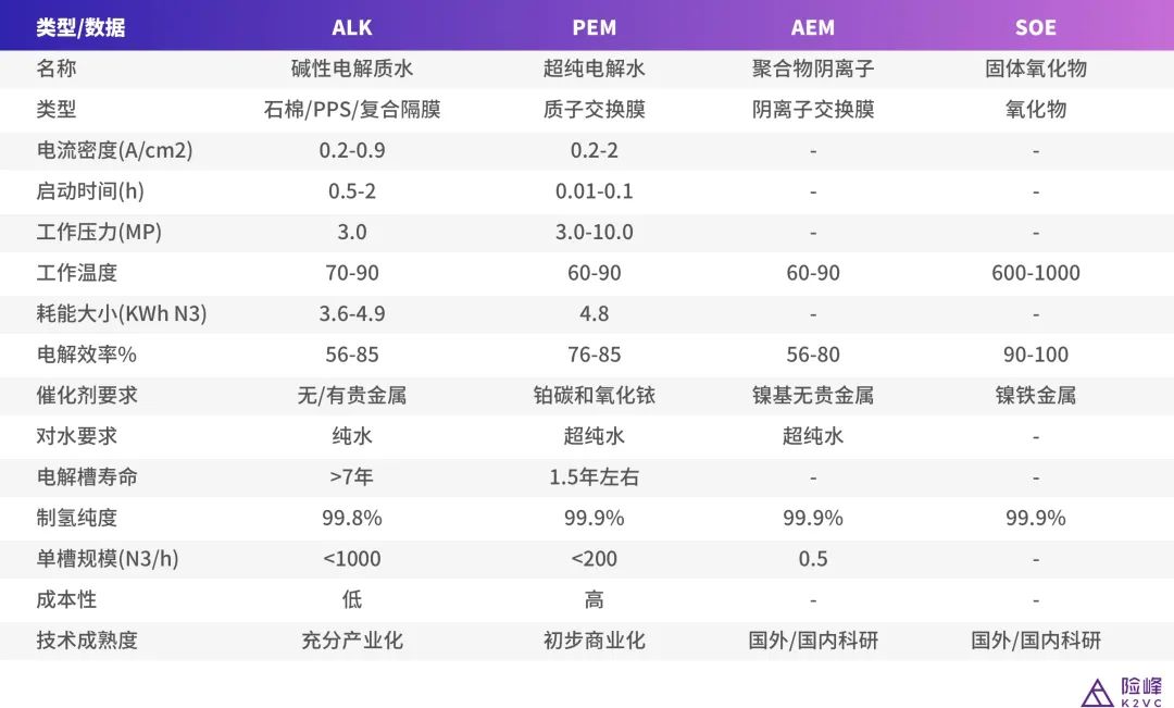 图表:四种电解水制氢技术对比